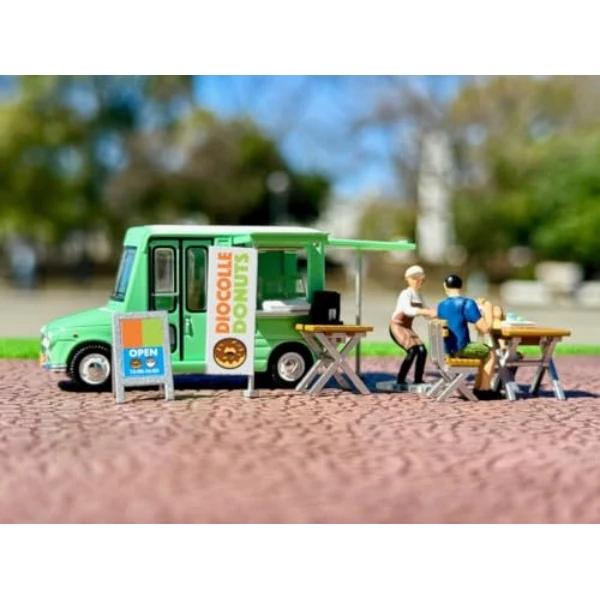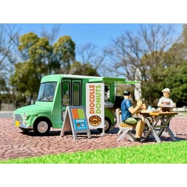 ジオコレ64#カースナップ 24a ドーナツ屋 ABS樹脂、PVC製人形・小物セット + 1/64スケールダイキャスト製ミニカー セット