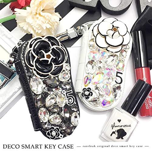 キラキラデコのゴージャス感たっぷりスマーキーケース。 BIGフラワーと輝くストーンビジュー・数字5のデコレーション。 手のひらになじむ曲線で持ちやすさ◎ キーリング4個+取り外し可能なリングが1個。