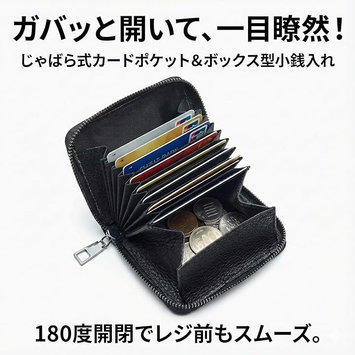 お札を折らずに収納でき、180度開くから中身が丸見え。
