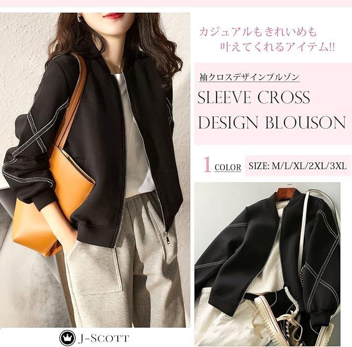 袖にクロスに施されたシルバーテープの飾りと、ジッパーのシルバーカラーがリンクして。