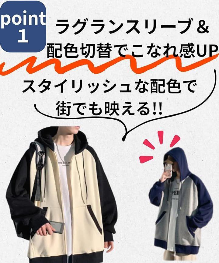 「快適な着心地」ジップパーカー メンズ 秋冬用。