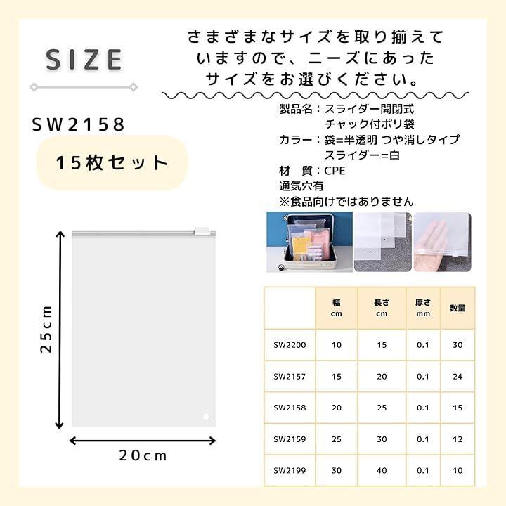 3world ジップ袋 スライダー開閉 チャック付 ポリ袋 スライダーを移動させることで、楽に開閉が可能なポリエチレン製のジッパーバッグです。
