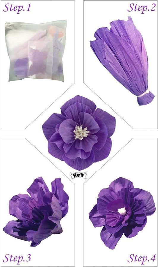 折りたたまれたクレープ紙を1枚ずつ広げていけば華やかなジャイアントフラワーが簡単にできあがります。