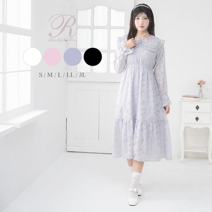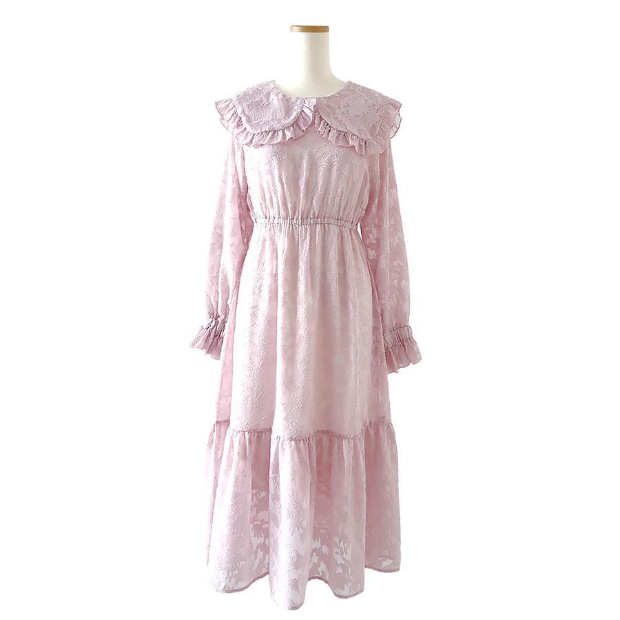 大きめなフリル襟が愛らしいジャガードワンピース。