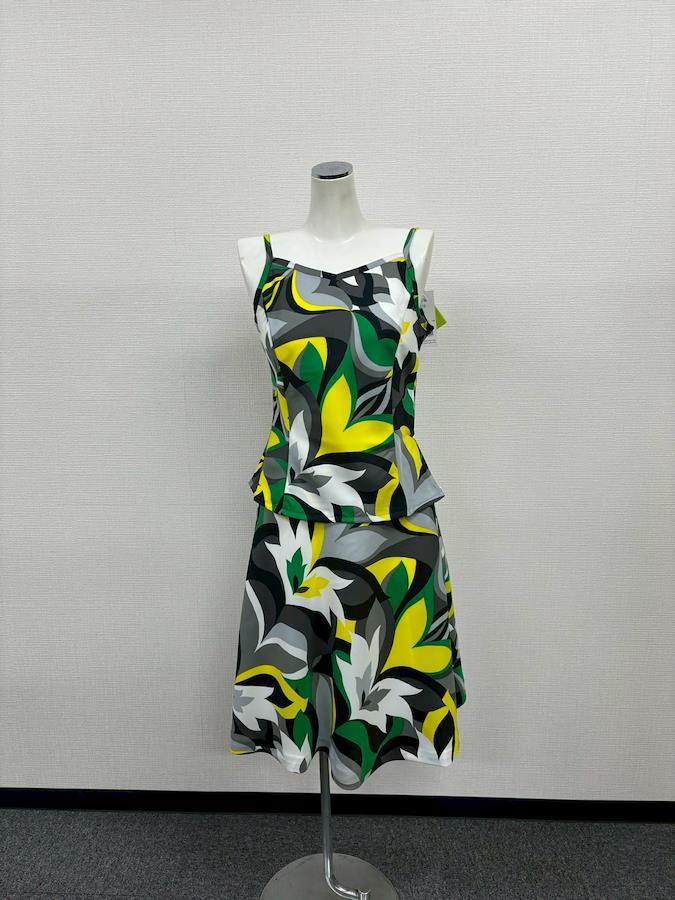 〇ジャケット・キャミソール・スカートの3点セット!明るい印象を与える大胆なトロピカルプリント。スカート&キャミソールのセパレートで、着こなしのアイデアも自由自在。・ジャケットにはストレッチが効いているので、動きやすい。