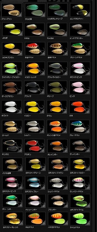 Length 22mm Hook Size e-hook#8 Ring Size #1 Color 通常カラー ※掲載している商品の画像は代表画像を表示しています。また実物と色が違って見える場合があります。あらかじめご了承下さい。 全てのスプーニングの軸となるベイシカルスプーン。ティアロはスローからファーストまで幅の広いリトリーブキャパシティーを持ったベーシカルスプーンです。 水の掴みが良いオーソドックスなティアドロップ型の形状と、度重なるテストにより決定した微妙なノーズやカップのベンド角度により、大きなウォブリングで時より発生するイレギュラーアクションで食わせのきっかけを生みつつもきっちり泳ぎ続けさせることが可能になりました。 泳ぎ出しも抜群なので、着水直後や着底からの巻き始めバイトを逃しません。0.7g~3.1gのサイズバリエーションにより、トップからボトムまで幅広いレンジをカバーします。■杉山代悟フィールドスタッフ厳選カラーマッディウォーター専用のカラーです。両サイドの蛍光レモンと畜光のプツプツを入れることにより視界の悪いマッディーウォーターでもしっかりアピールします。ダイゴマイトは2はクリアーウォーター、新色はマッディーウォーター専用でご使用下さい。 ■黒野浩二フィールドスタッフ厳選カラー激しぶり時に威力を発揮するダークオリーブ。黒野氏(ショボクレシリーズ)の厳選カラーです。 ■遠藤肇フィールドスタッフ厳選カラーマッディー、クリア問わず、放流のセカンドサードで長く使えるカラーです。 ■井上悟フィールドスタッフ厳選カラーメインは茶色系の濁りのエリアですが、クリアウォーターでは放流セカンドからサードでまだ残したいとき。マッディーウォーターでは短い距離で食わせることを意識したい時に使用します。 ■磯部貴博フィールドスタッフ厳選カラー食いが渋った時に、一匹をとりたいというときに是非とも使用していただきたいカラーです。また、近年増えてきたプールエリアでもオススメです。 ■針谷方子フィールドスタッフ厳選カラー(マサのドクリンゴ) ちびクワトロスプーンでの実績カラー。朝一のパイロット的に使うのも良し。クリアーでも効果のあるカラーマッディー、クリアー問わず、活躍するカラーです。 ■黒野浩二フィールドスタッフ厳選カラー(クログロー) クリアー マッディーウォーターともに、セカンドからサードで効くカラーです。ナイターでも威力を発揮します。 ■杉山代悟フィールドスタッフ厳選カラー(よもぎ) マッディーウォーターでは、とにかく強いカラーです。東山湖でのウイニングカラーでもあります。(かれは) 大会などで一匹を絞りだす為のカラーです。出す手がなくなった時のオススメカラーです。 ■井上悟フィールドスタッフ厳選カラー(ちゃまめ) クリアーウォーターの放流セカンドからサードの少しカラーに悩むような時。マッディーウォーターでは先発のサーチベイト的な役から渋い時の、あと一匹ほしい時まで対応します。 ■遠藤肇フィールドスタッフ厳選カラー(エンドブラスター) クリアー マディウォーターともにペレットを撒いているエリアに効くカラー。また、ペレットを撒いていないエリアの激渋にも効きます。 ■ティモン人気定番カラー(コウキブラウン) クリアー マッディーウォーターともオールラウンダーで使用できるカラーです。クワトロスプーン ちびクワトロスプーンでも人気定番カラーです。