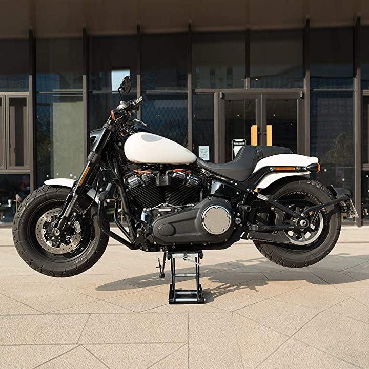 ・「積載能力抜群」バイクジャッキの最大積載能力は500kg(1100LB)、バイク用で、多くの車種に対応できます、自宅のバイクメンテナンスに最適。一人でもタイヤ交換、チェーン清掃ができます。
