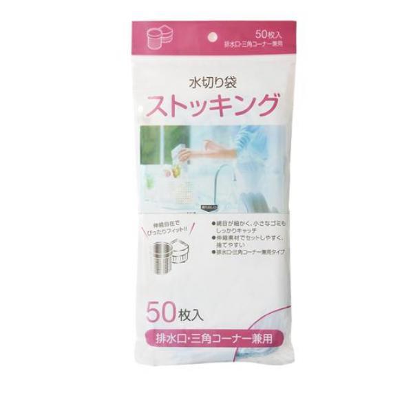 製品の特徴●ストッキングタイプの排水・三角コーナー兼用水切り袋です。●フィットしやすい。●排水口用、三角コーナー用として兼用することができます。●サイズ:横30×縦30cm(50枚入)