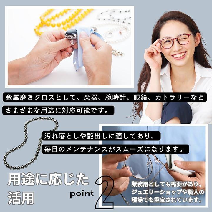 「用途に応じた活用」 金属磨きクロスとして、楽器、腕時計、眼鏡、カトラリーなどさまざまな用途に対応可能です。
