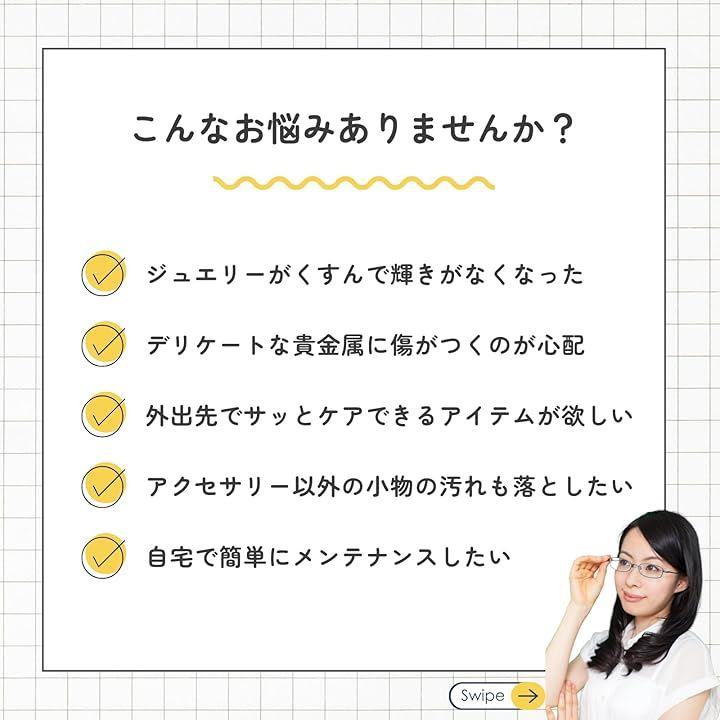 指輪やネックレス、ピアスなど幅広いアイテムに対応しており、見た目を美しく保ちます。