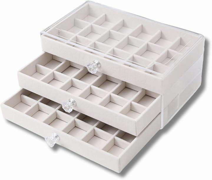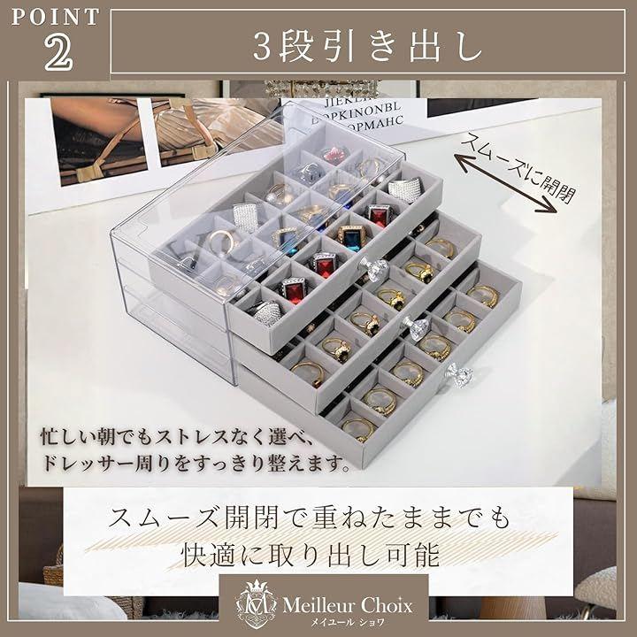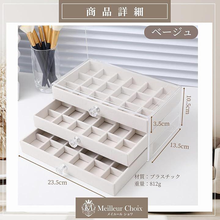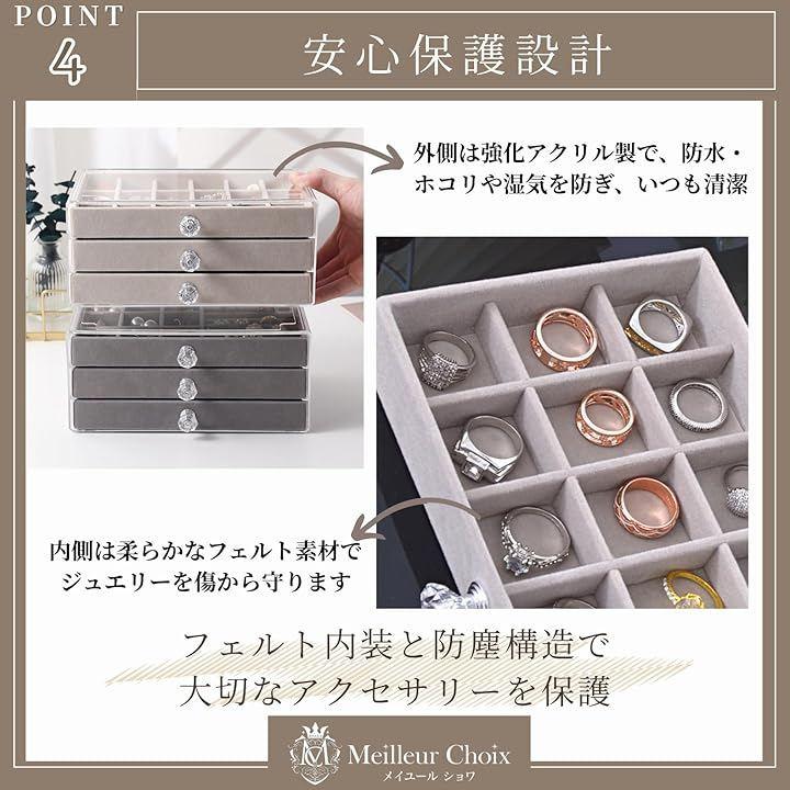 透明アクリルカバー付きで中身が一目で分かり、ほこりや汚れから大切なジュエリーを保護。