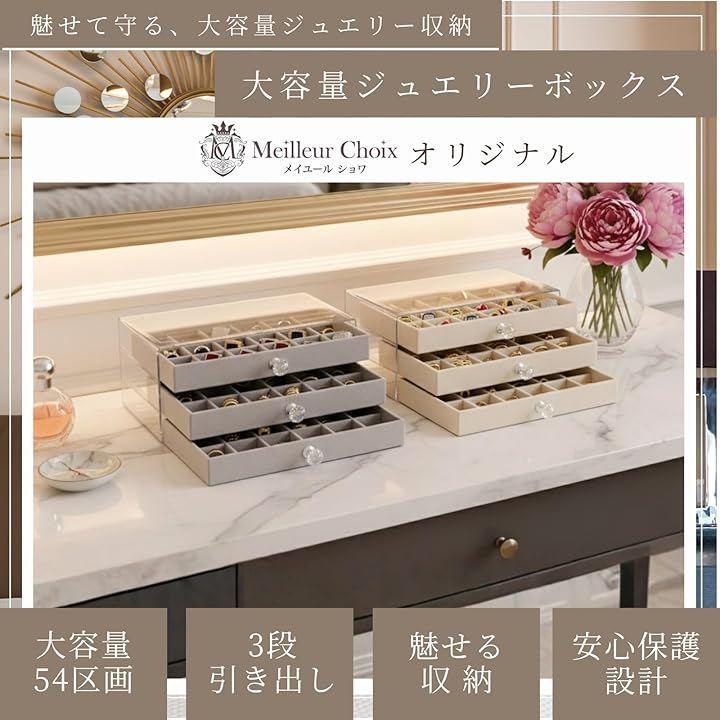 3段引き出し構造でたっぷり収納できる大容量ジュエリーボックス。