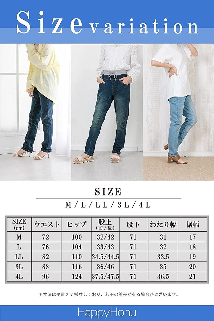 [3Lサイズ]ウエスト:88cm、ヒップ:116cm、股上:36/46cm、股下:71cm 、ワタリ:35cm 、裾幅:20cm、