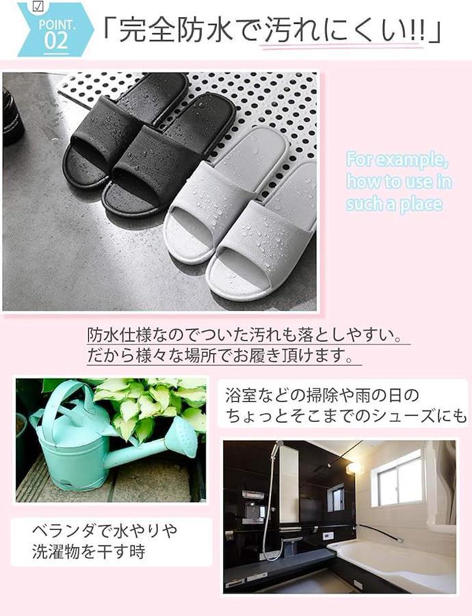 モノトーンがシンプルでスタイリッシュな防水仕様のルームシューズ。