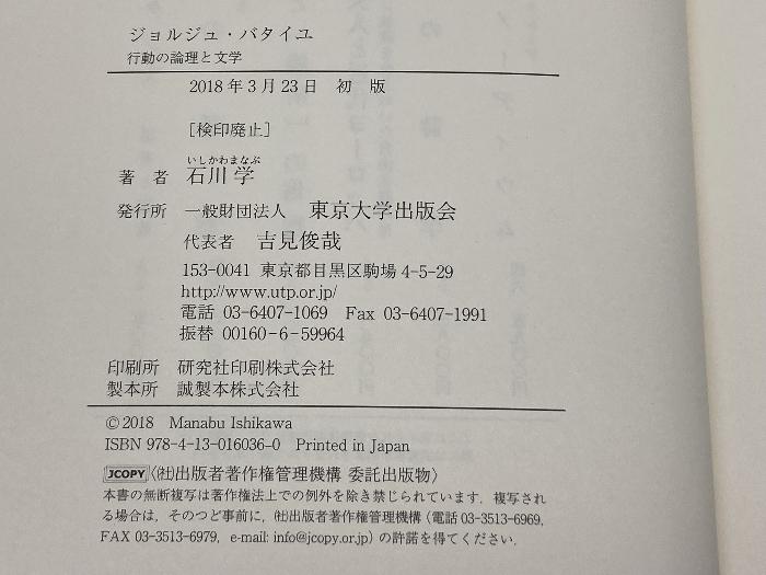 ジョルジュ・バタイユ: 行動の論理と文学 東京大学出版会 石川 学