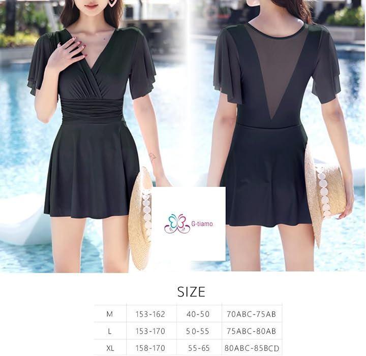 大人カワイイレイヤー風のデザインでインナー水着もワンピースも一体型になっており着替えも楽ちん。