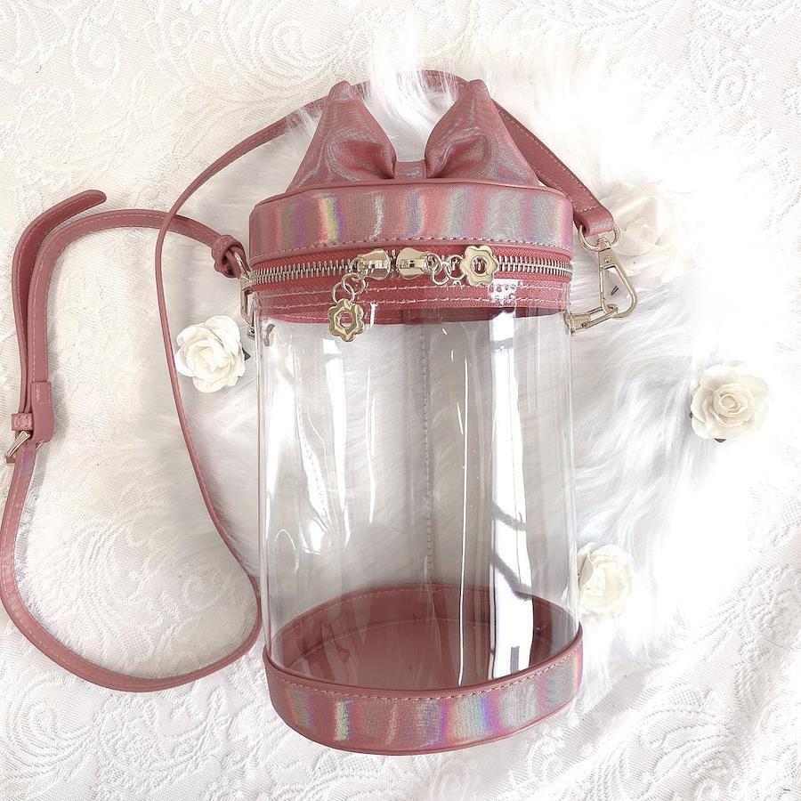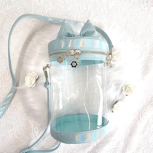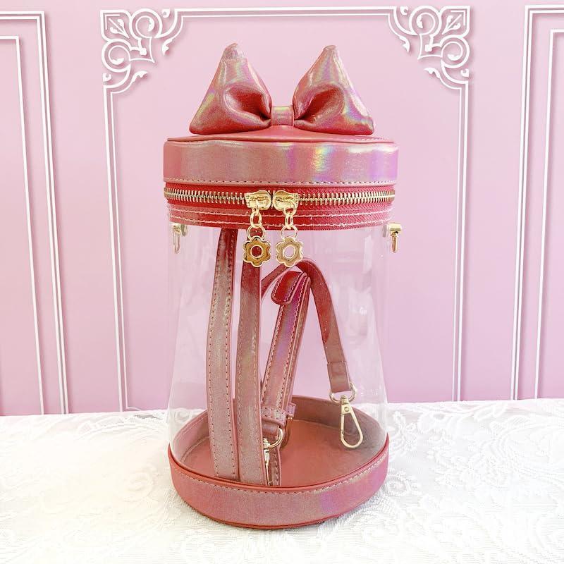 登録情報クロージャータイプ ジッパー 原産国 中国猫耳風のリボンが可愛い痛バッグぬいぐるみやマスコット、フィギュア、ペンライトなど様々なグッズを入れることができるリボンは寝かせる事もできる仕様です。透明部分内寸:W13.5×H18.5×D13.5cmサイズ:H21cm(リーボンを抜く) x W13.5cm 、円周約44cm