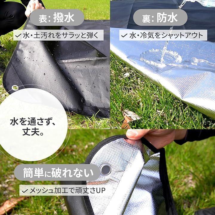 また、キャンプのグランドシートやテントインナーシートとして敷けばアルミの断熱効果により冬の底冷え対策もできる万能シートです。