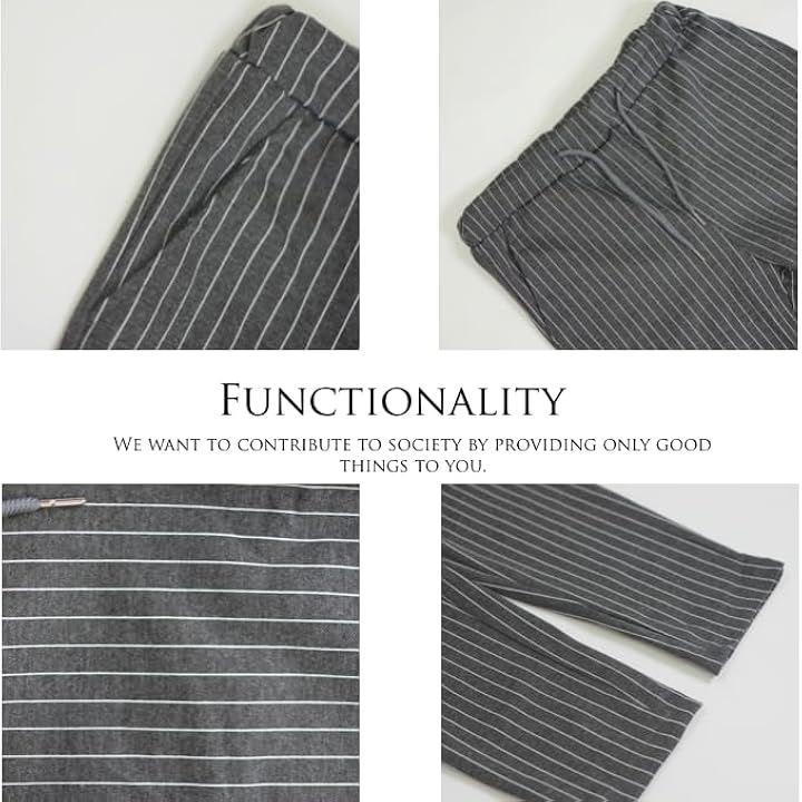 ストライプデザインと太ももから裾にかけて細くなっていくテーパードシルエットを採用により脚長効果を実現。
