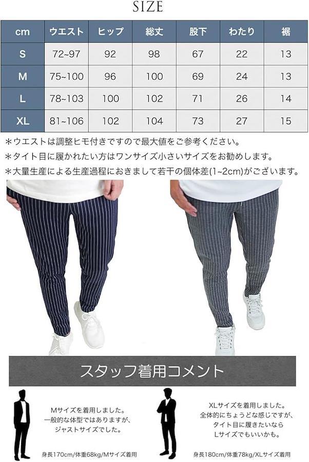 ウエストはゴム紐で調節できますので細身・スリムなシルエットで履きたいという方は、1サイズ小さめをおすすめしております。