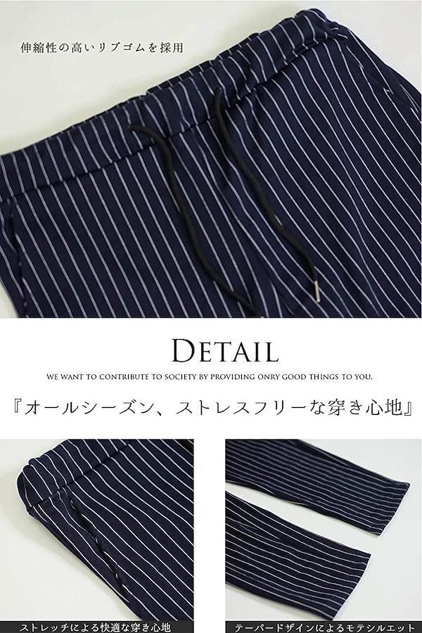 ・「デザイン」ストライプデザインと太ももから裾にかけて細くなっていくテーパードシルエットを採用により脚長効果を実現。