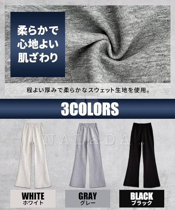 「ベルボトムスタイルアップ」膝から裾に向かって広がりのあるベルボトムシルエットがお洒落なスウェットパンツ。