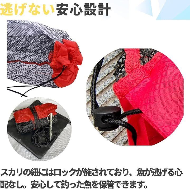 「逃げ出し防止の二重ロック」 スカリの紐には二重ロックが施されており、魚が逃げる心配がありません。