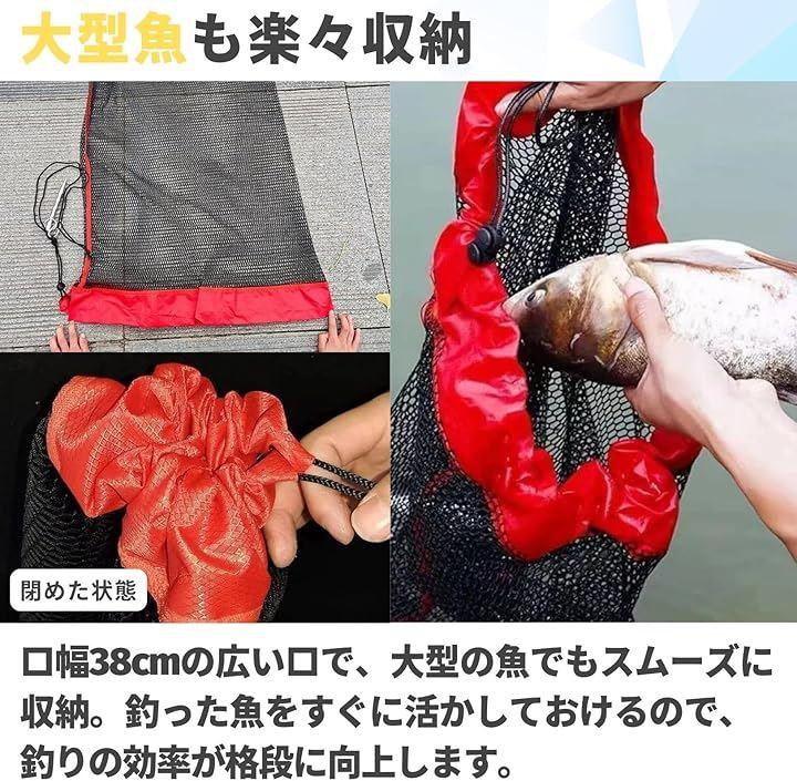 「広い口で大型魚も楽々」 口の幅が約38cmあるため、大型の魚でも簡単に入れることができます。