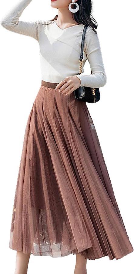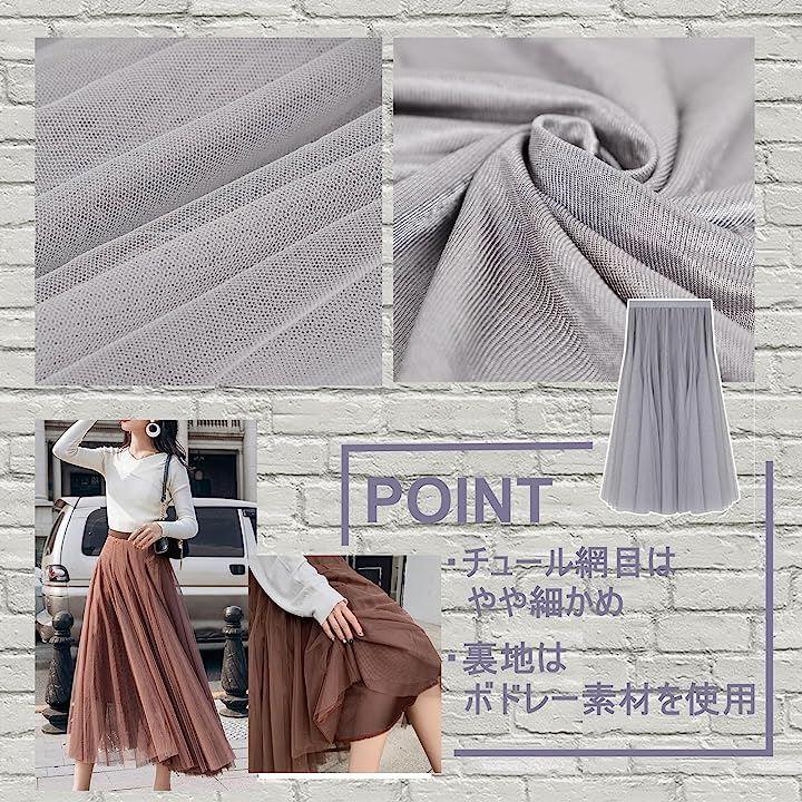 デイリー使いはもちろん特別な日にも、シンプルなニット1枚着るだけでもサマになる、たっぷりボリュームの表情豊かなチュールスカートです。