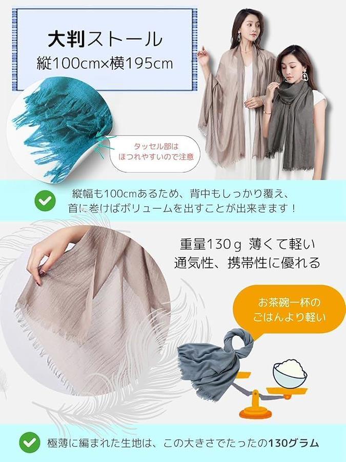 「サイズ・カラー」 大判 ストール ショール :縦100cmx195cm の 特大 サイズ。。 全15色、新色ぞくぞく追加。。