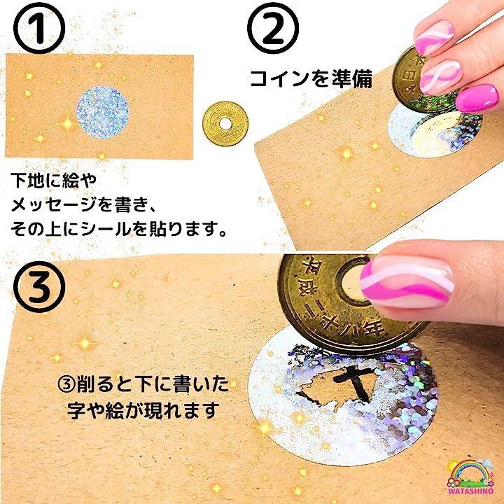 スクラッチシールとは、紙に貼り付けコインや爪などで表面を削ると、下から絵や文字が現れるシールです。