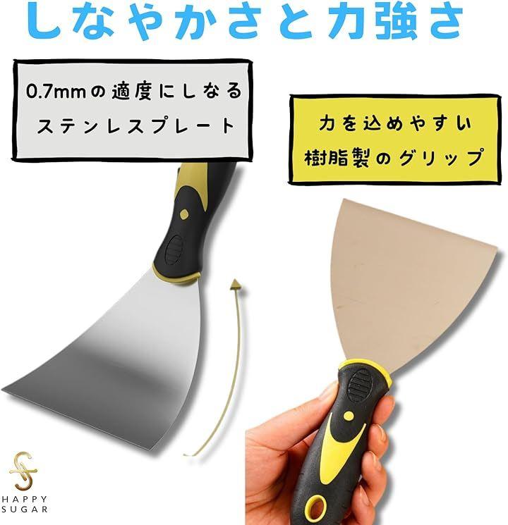 「多様な用途に対応するスクレーパー」日常的な作業やDIYの中で、パテの除去やガム、ステッカーの剥がしなどの広範囲の用途に対応できます。
