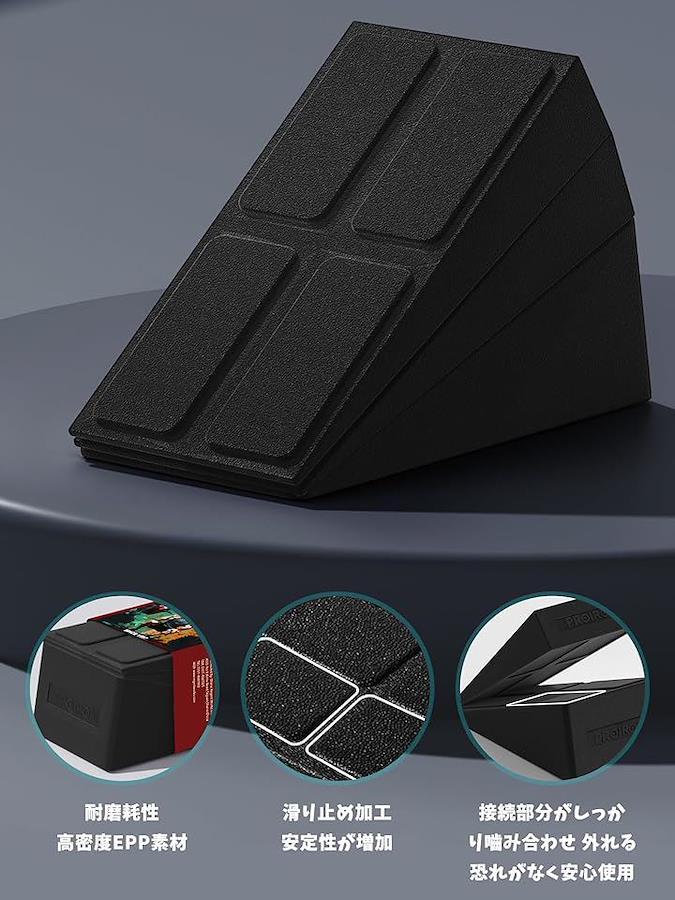 凹凸面設計のスクワットウェッジブロックは摩擦力が強く、安全かつ安定したトレーニングが可能です。