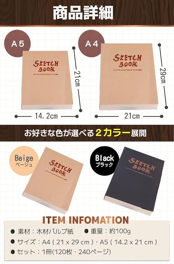 「商品詳細」重量:約100g素材:木材パルプ紙/サイズ:A4 ( 21 x 29 cm )・A5 ( 14.2 x 21 cm )/セット:1冊(120枚・240ページ)/
