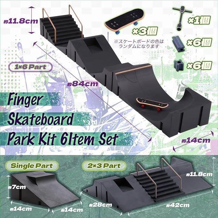 「セット内容」スケートパーク(6個セット:全6アイテム)、フィンガースケートボードx3個、コネクト工具13点付属