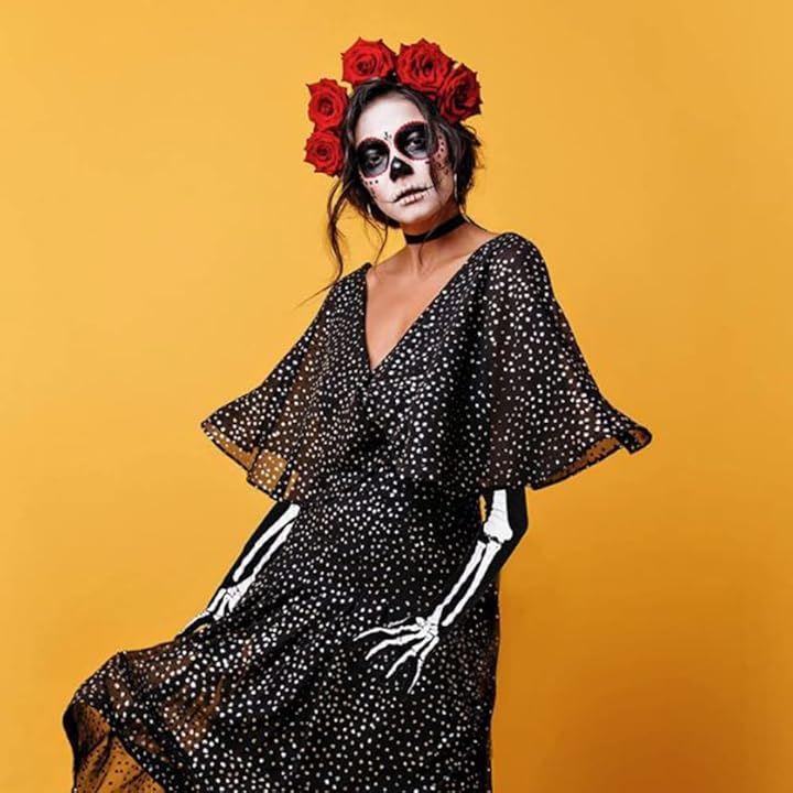 スケルトン風手袋(グローブ)で更にどっきり。?スケルトン・骸骨風Tシャツのオプションとしておすすめです。