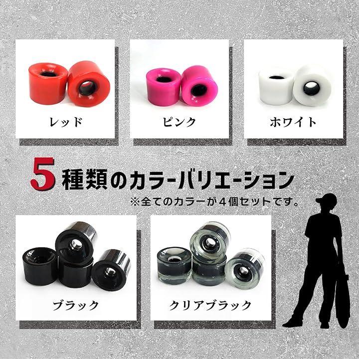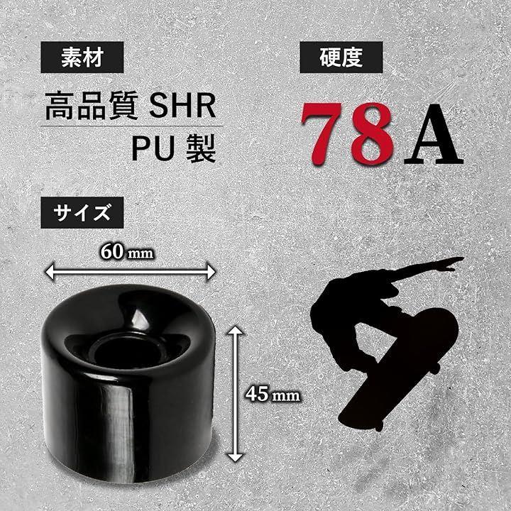 「素材と硬度」高品質SHR PU、硬度78A 「サイズ」60mmx45mm 「特長」滑りが滑らかで、街中のアスファルトも静かに走行可能。