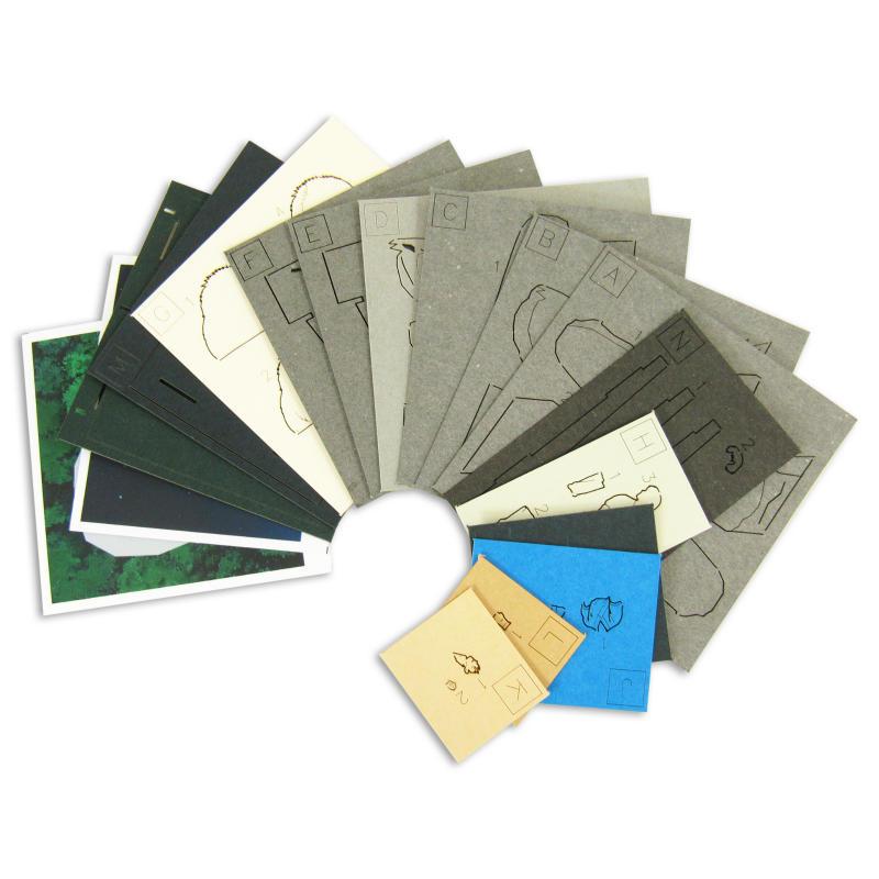 ■セット内容 レーザーシートA〜N(14枚)、ベース(1枚)、印刷シート(2枚)、組み立て説明書