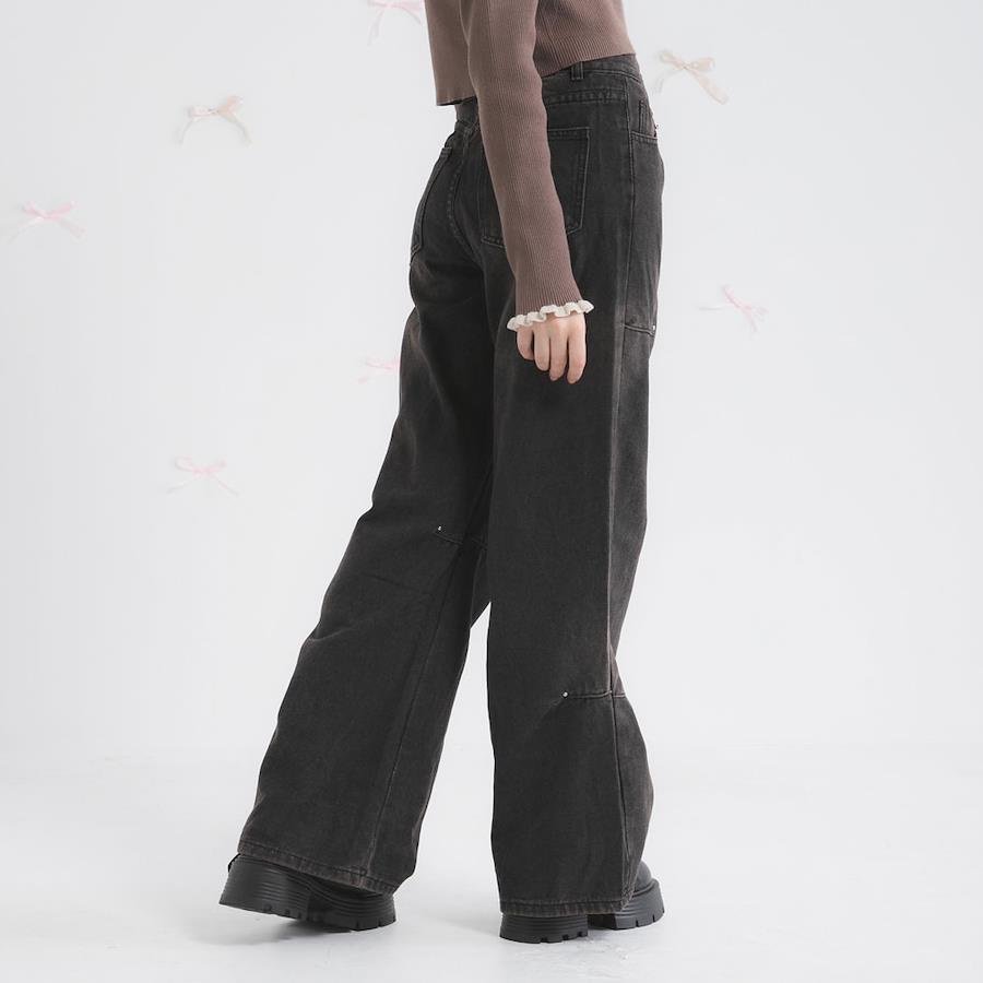 韓国オンニスタイルになれちゃうワイドデニムパンツ。