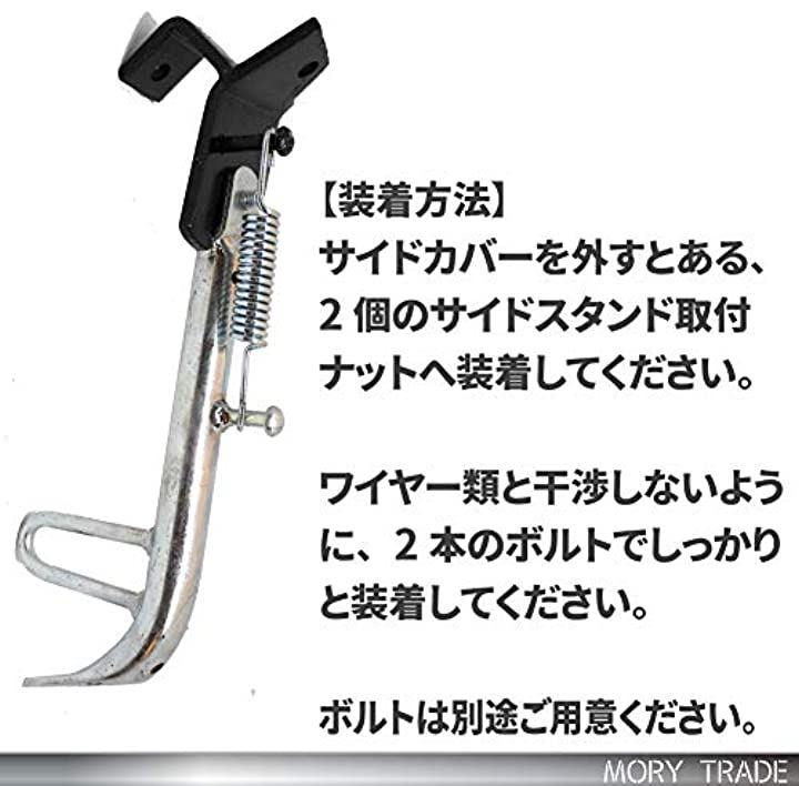 「装着方法」足置き下のサイドカバーを外していただくと、2個のサイドスタンド取付ナットがあります。