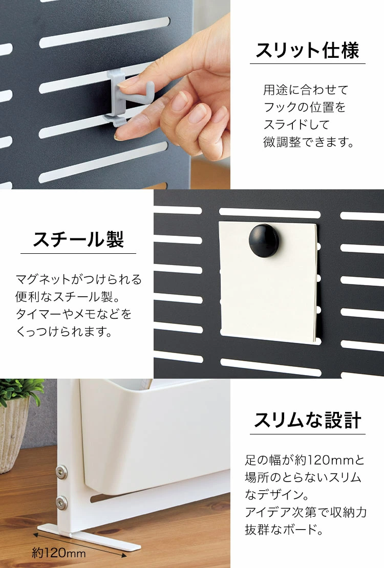 スチールパネル 自立式 磁石 フック付き キッチン マグネット 収納 ホワイト 白 ブラック 黒 壁面収納 アレンジボード ALTNA オルトナ おしゃれ デスク テレワーク キーフック インテリア 台所 モノトーン マグネット ボード 玄 [kite-a7460]