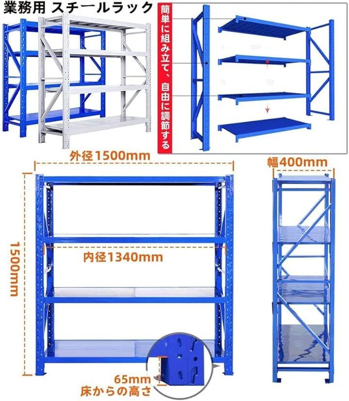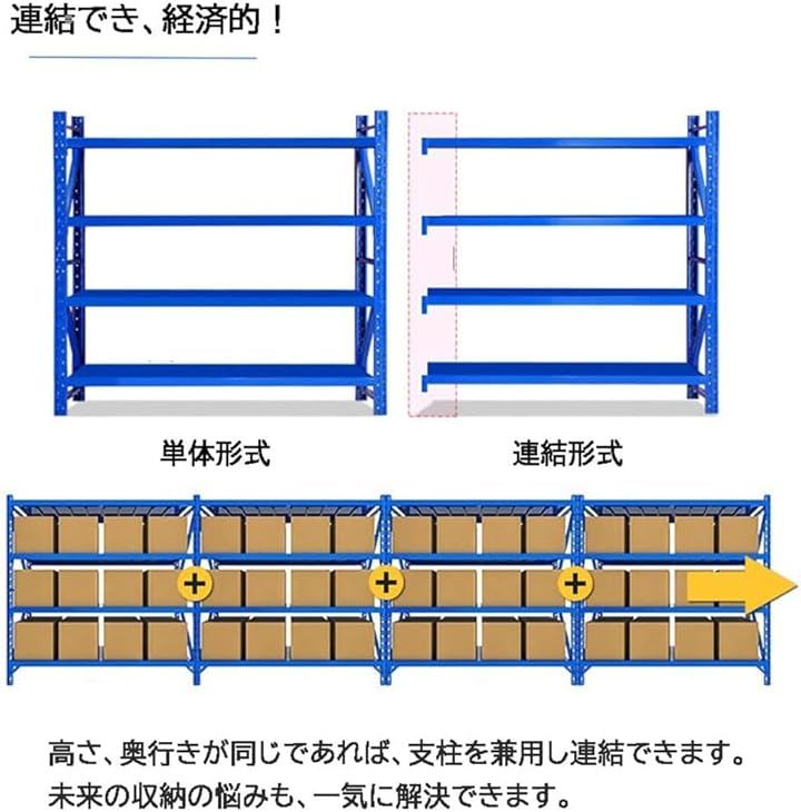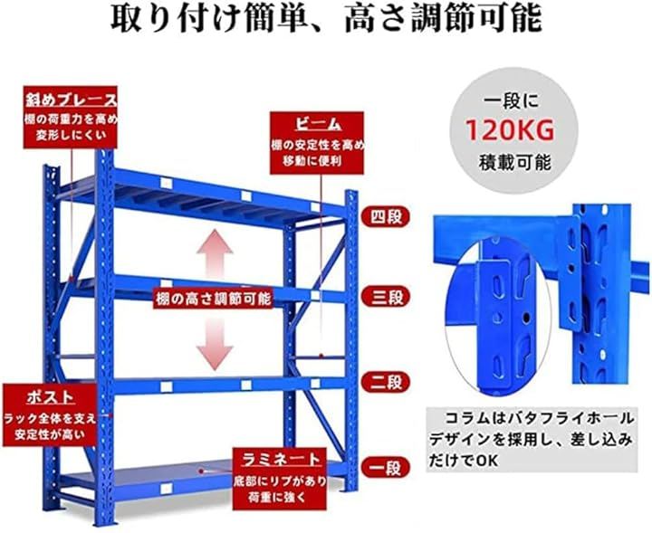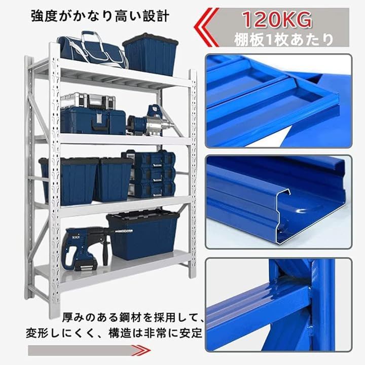 スチールラック 4段 耐荷重480kg 高さ調節可能 倉庫収納ラック 業務用 組立簡単 連結可能 物置 作業台 スチール棚 軽量ラック 物品棚 陳列棚 保管棚 整理棚 収納棚