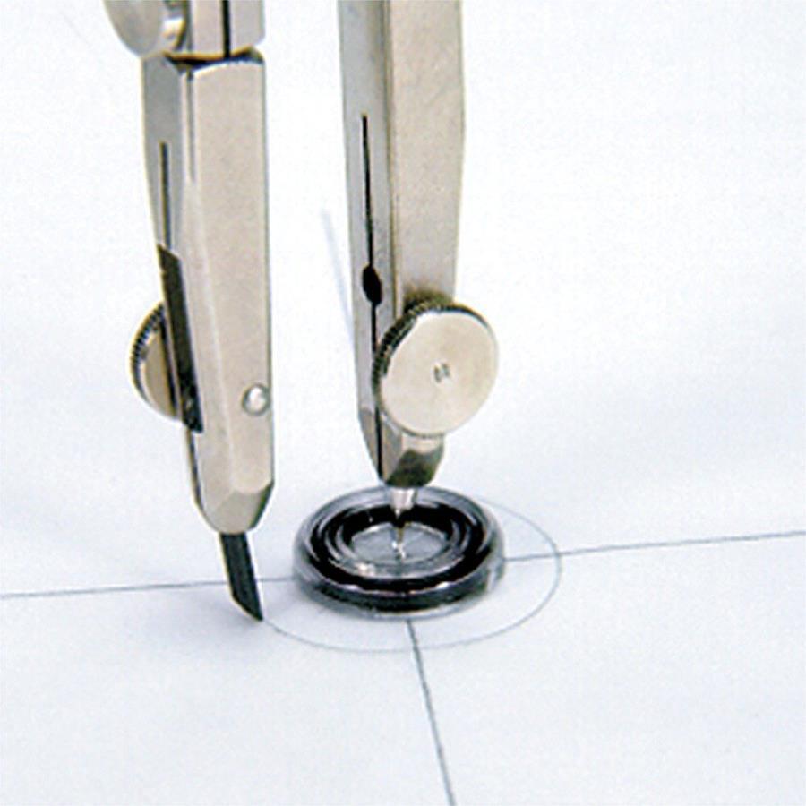 コンパスの針による図面への穴あき防止や、何重もの同心円を描くときにも中心を正確に保ち、ズレ防止に役立ちます。コンパスと一緒に持っておきたいアイテムです。