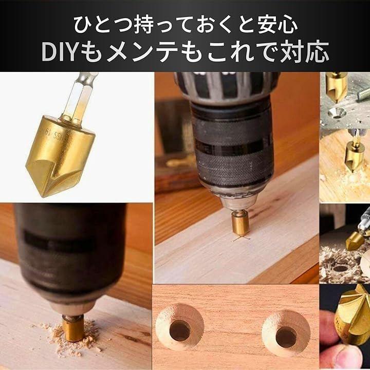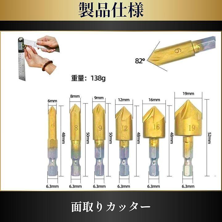 |「面取りカッター 6/8/9/12/16/19mm・82°」5枚刃でビビりを抑え、皿ネジの座ぐり、面取り、バリ取りを短時間で滑らかに。