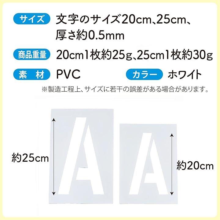 「サイズ」 文字のサイズ20cm、厚さ約0.5mm 「カラー」 ホワイト 「素材」 PVC 「商品重量」 1枚約25g 「内容」 26枚