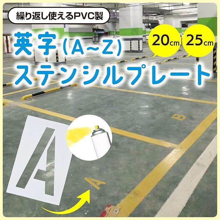 駐車場の区画表示や案内板、倉庫内の標示、看板作成など幅広い用途に対応する汎用性の高い英字ステンシルプレートです。