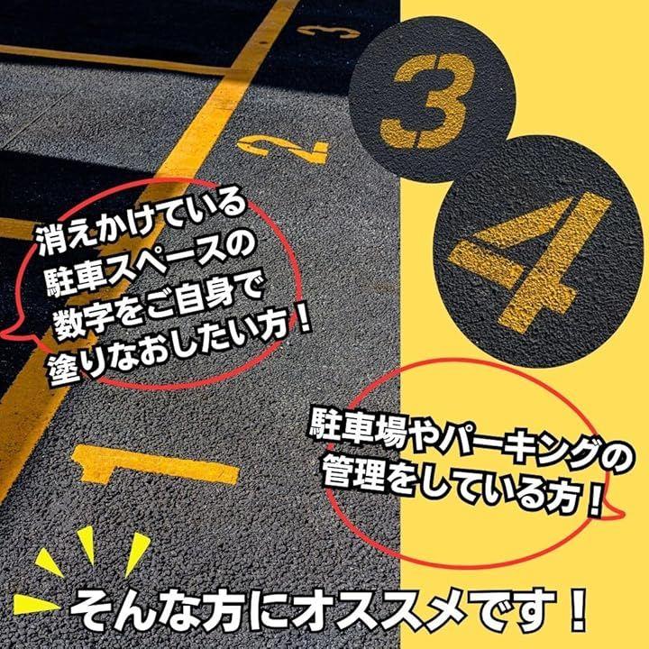 「番号表示プレート」駐車場やさまざまな場所で必要な番号表示に適した、繰り返し利用可能なPVC製のステンシルプレートセットです。