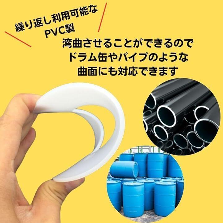 「長く愛用できる」このプレートは、平面だけでなく丸いものにも対応できる優れた柔軟性を持つので、床面だけでなく、ドラム缶やパイプのような曲面にも対応しています。