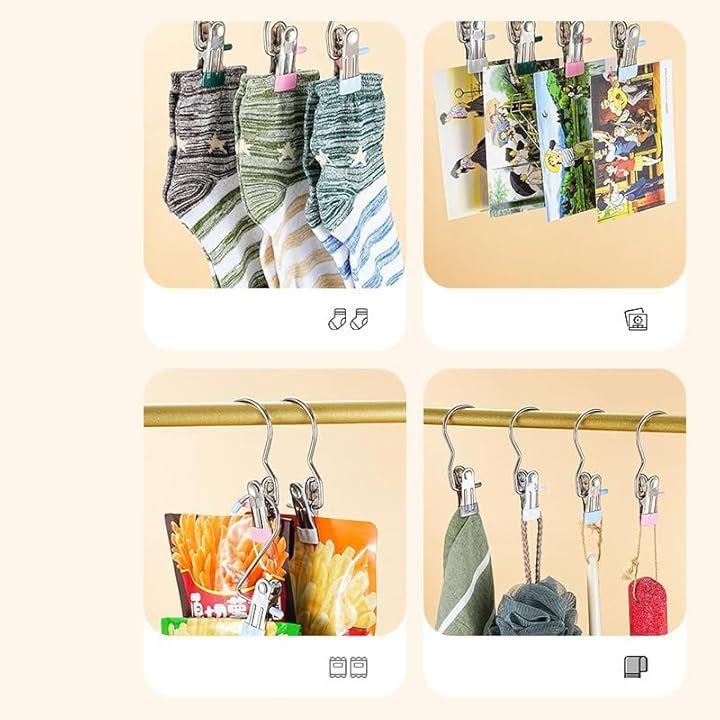 「洗濯バサミにフック付き」家庭での日常使用はもちろん、洗濯店や旅行、業務用にも適した多用途アイテムです。