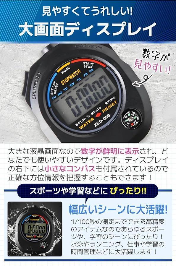 (検索用:ストップウォッチ スポーツ 学習 防水 コンパス 大画面 タイマー アラーム 1/100秒 水泳 運動 審判 ストップウォッチ 多機能)